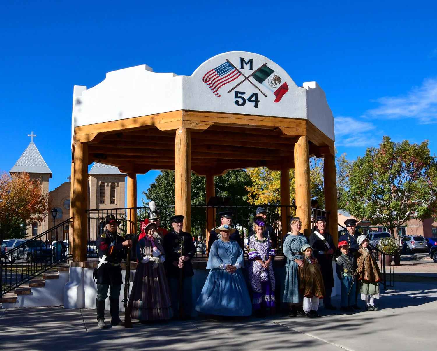 We were lucky to arrive at the Plaza in time for the El Tratado De La Mesilla Reenactment. The ratification of the Gadsden Purchase, also referred to as "El Tratado de La Mesilla," was remembered on the Mesilla Plaza by re-enactors from the Friends of Fort Selden and Sons of Confederate Veterans organizations. It is an annual ceremony that includes lowering of a Mexican flag and the raising of United States flag of 1854.